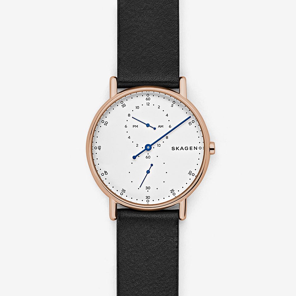In der Skagen Kollektion findet Man(n) zu jedem Stil die passende Uhr, sowohl klassische Modelle für jeden Tag als auch elegante Uhren für besondere Gelegenheiten. Von Uhren mit blau beschichteten Milanaisebändern bis hin zu Modellen mit eleganten Lederbändern in verschiedenen Farben, hier finden Sie Herrenuhren in allen Formen und Größen, mit unterschiedlichsten Funktionen und neuen Technologien, die auch den anspruchsvollsten Träger zufriedenstellen werden. Mit Hilfszifferblättern, die die Zeit in einer zweiten Zeitzone anzeigen, oder Hybrid Smartwatches, die immer mit dem Smartphone verbunden sind und den Träger an Termine erinnern, sind unsere Herrenuhren fast schon persönliche Assistenten am Handgelenk. Unsere Skagen Smartwatches können sogar noch mehr. Sie informieren Sie über eingegangene Benachrichtigungen, tracken Aktivitäten, Schlaf, Kalorienverbrauch oder die Erreichung individuell festgelegter Ziele.